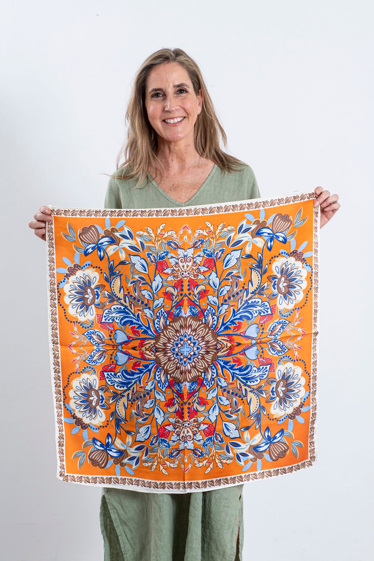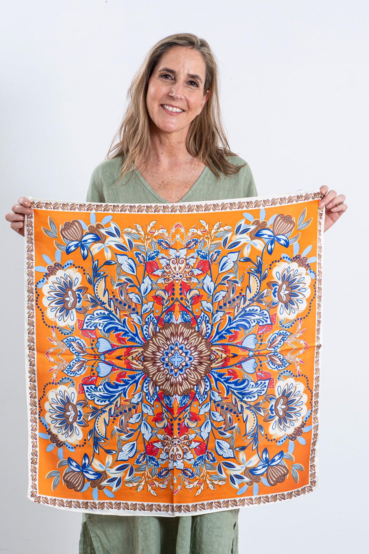 echarpe estampado floral vibrante, cuadrado 70 x 70 cm, mezcla equilibrada de fibras para ofrecer un tacto de alta calidad y suavidad junto a un rendimiento duradero