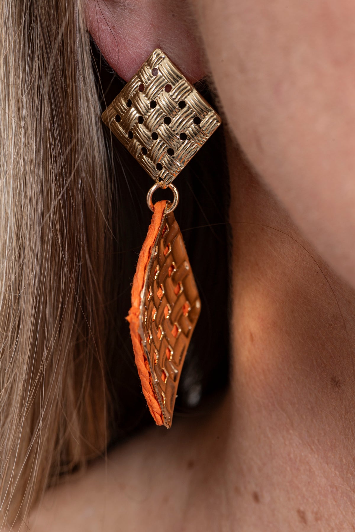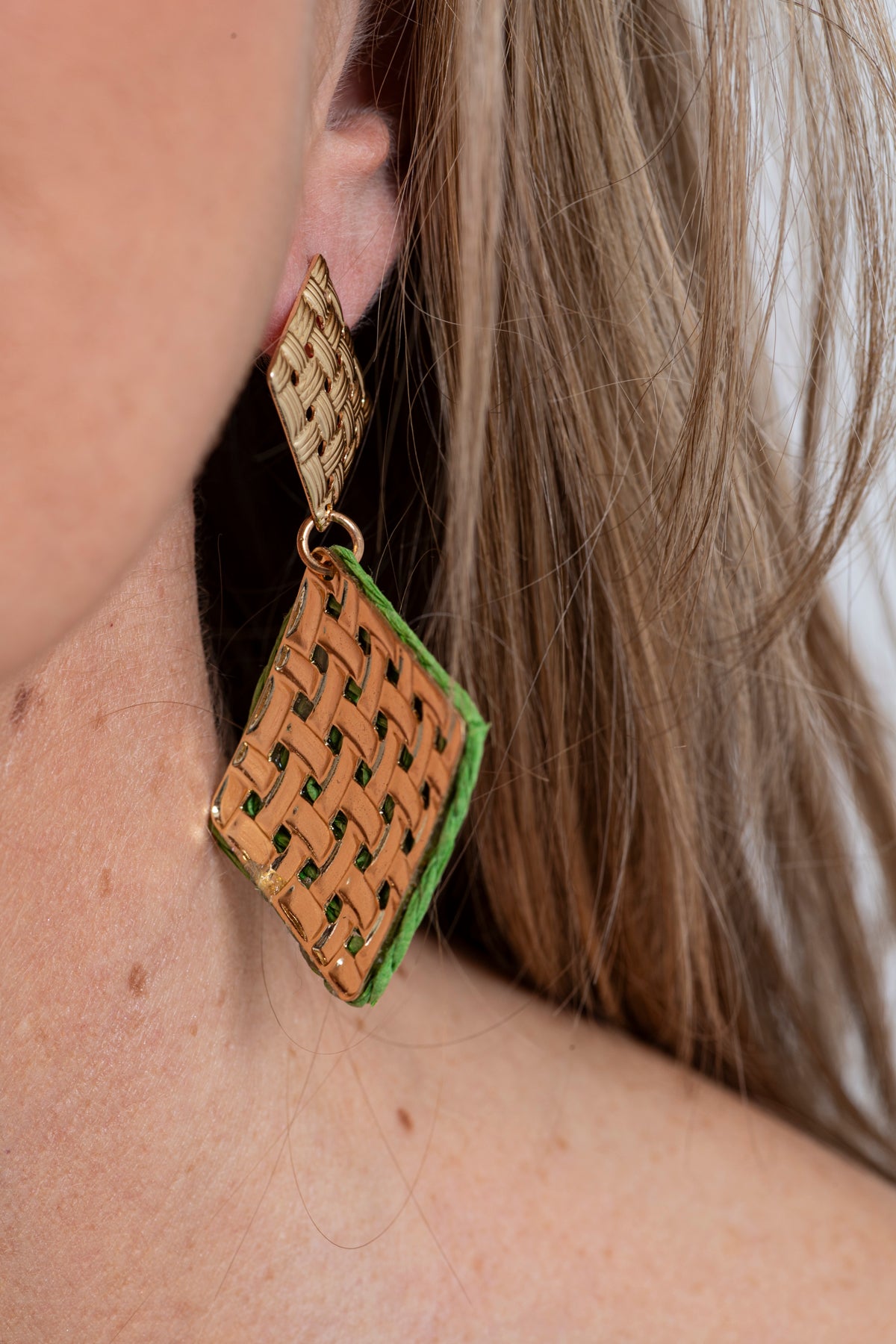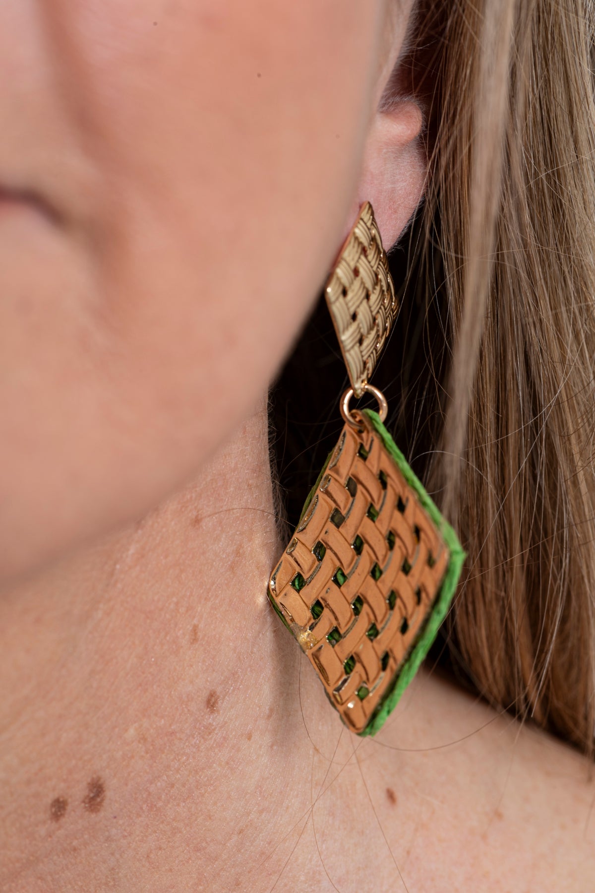 aros artesanales cuadrado, tejido fibra y acabado martillado, fantasia fina.