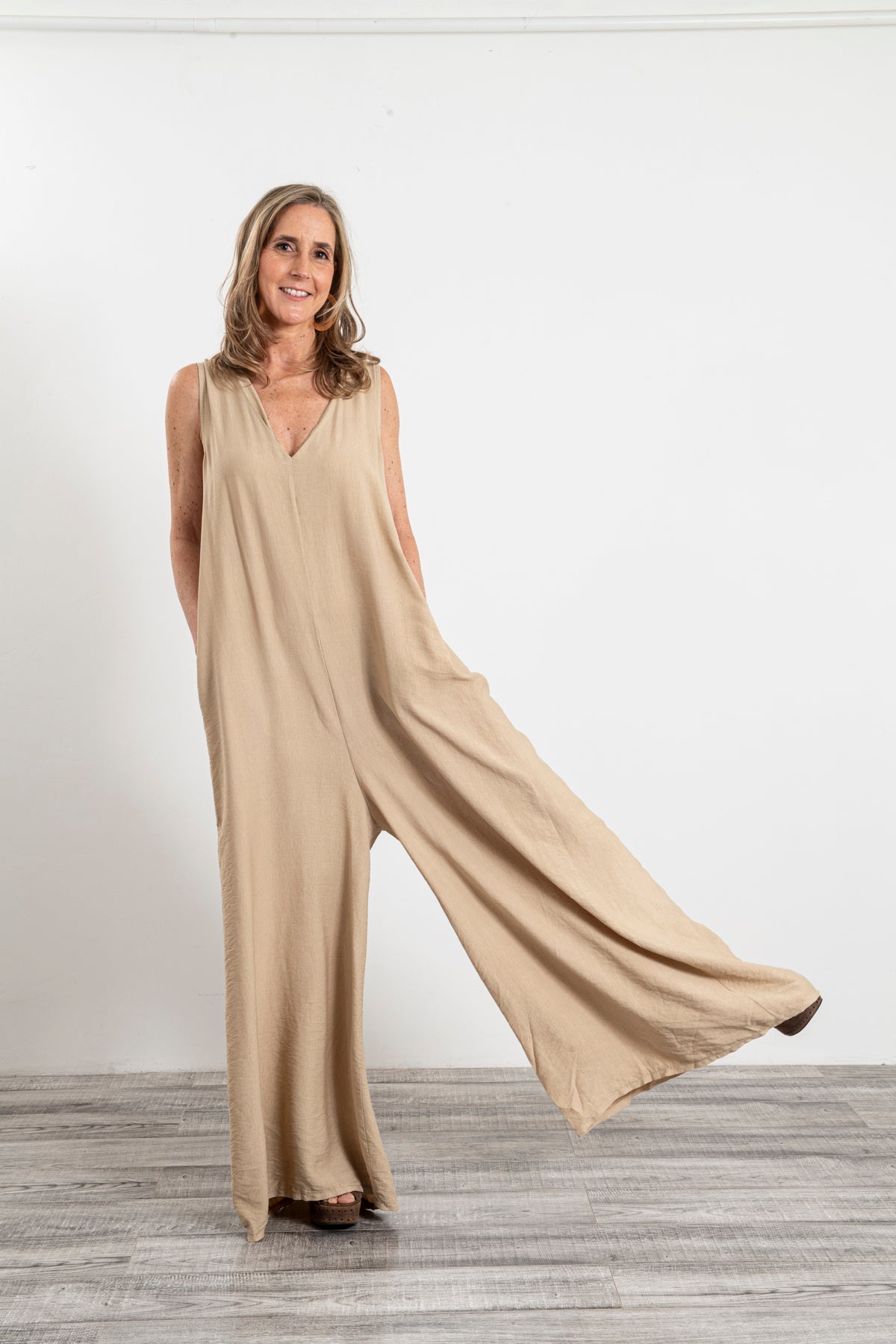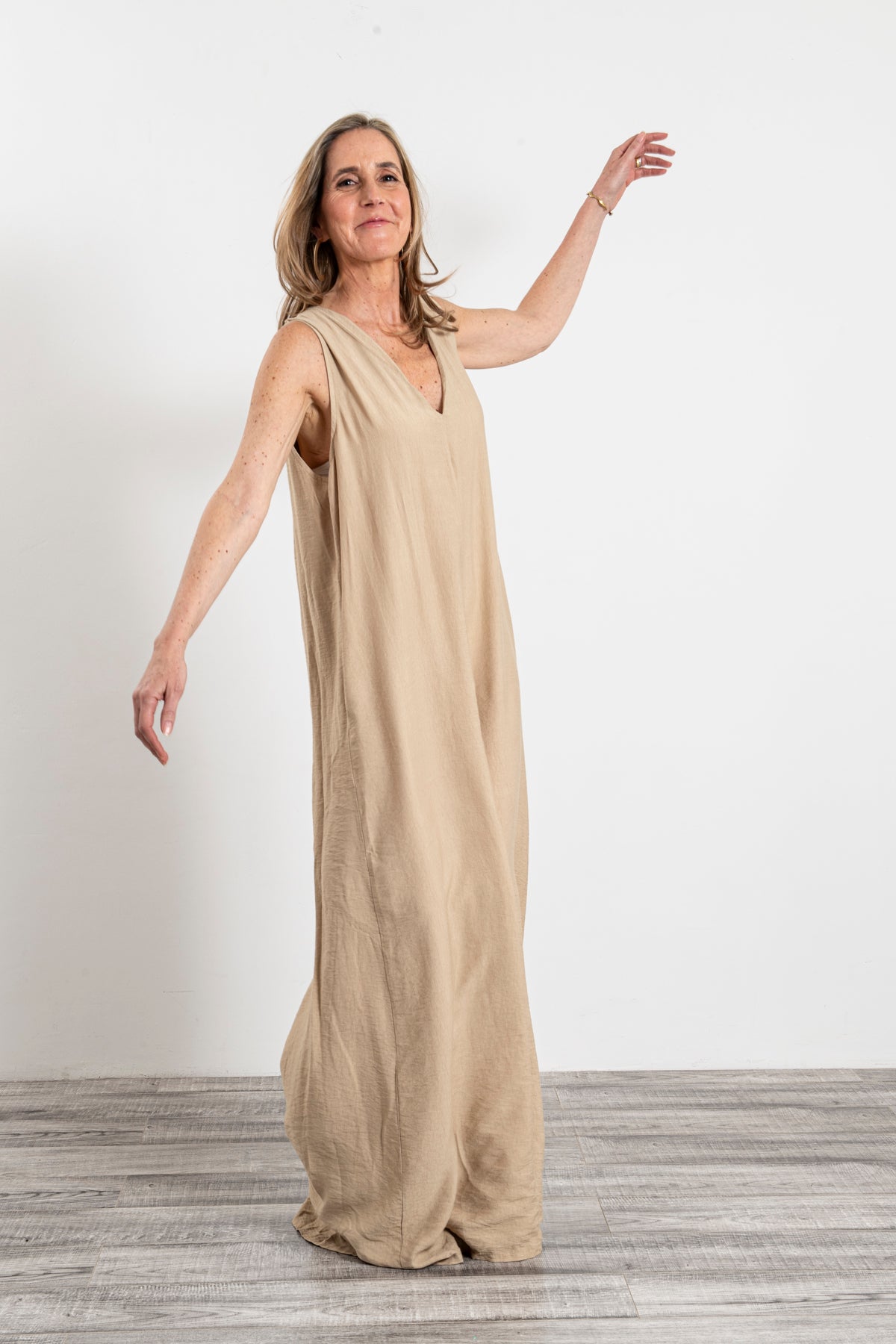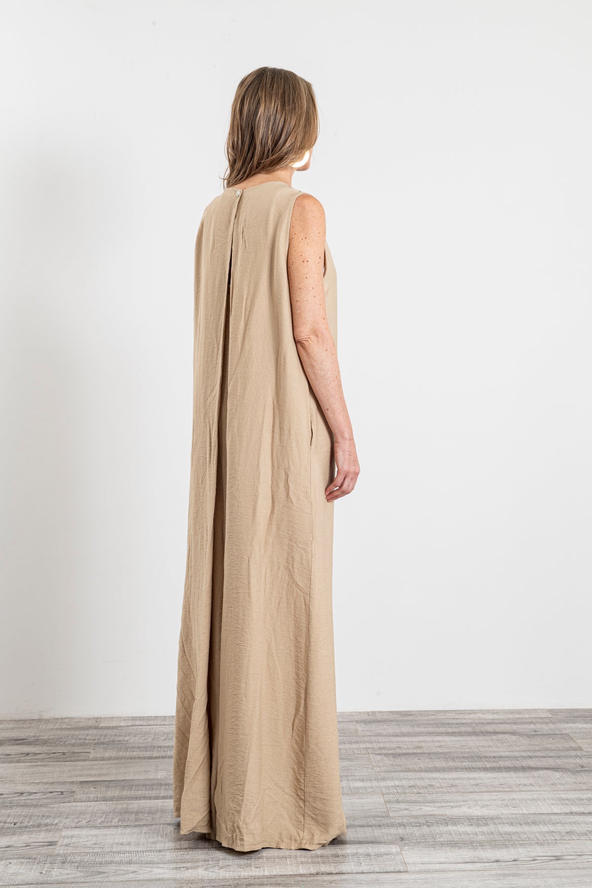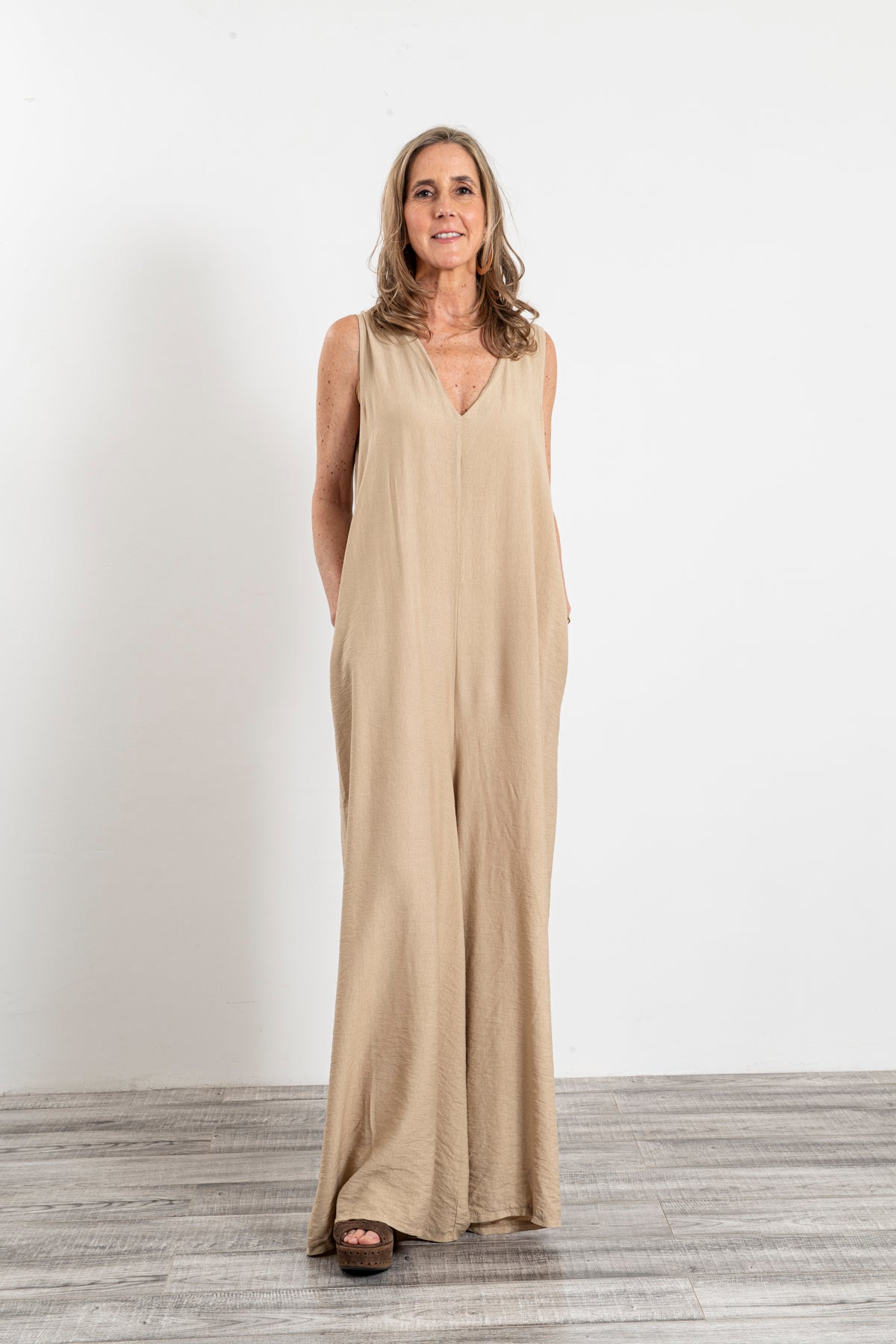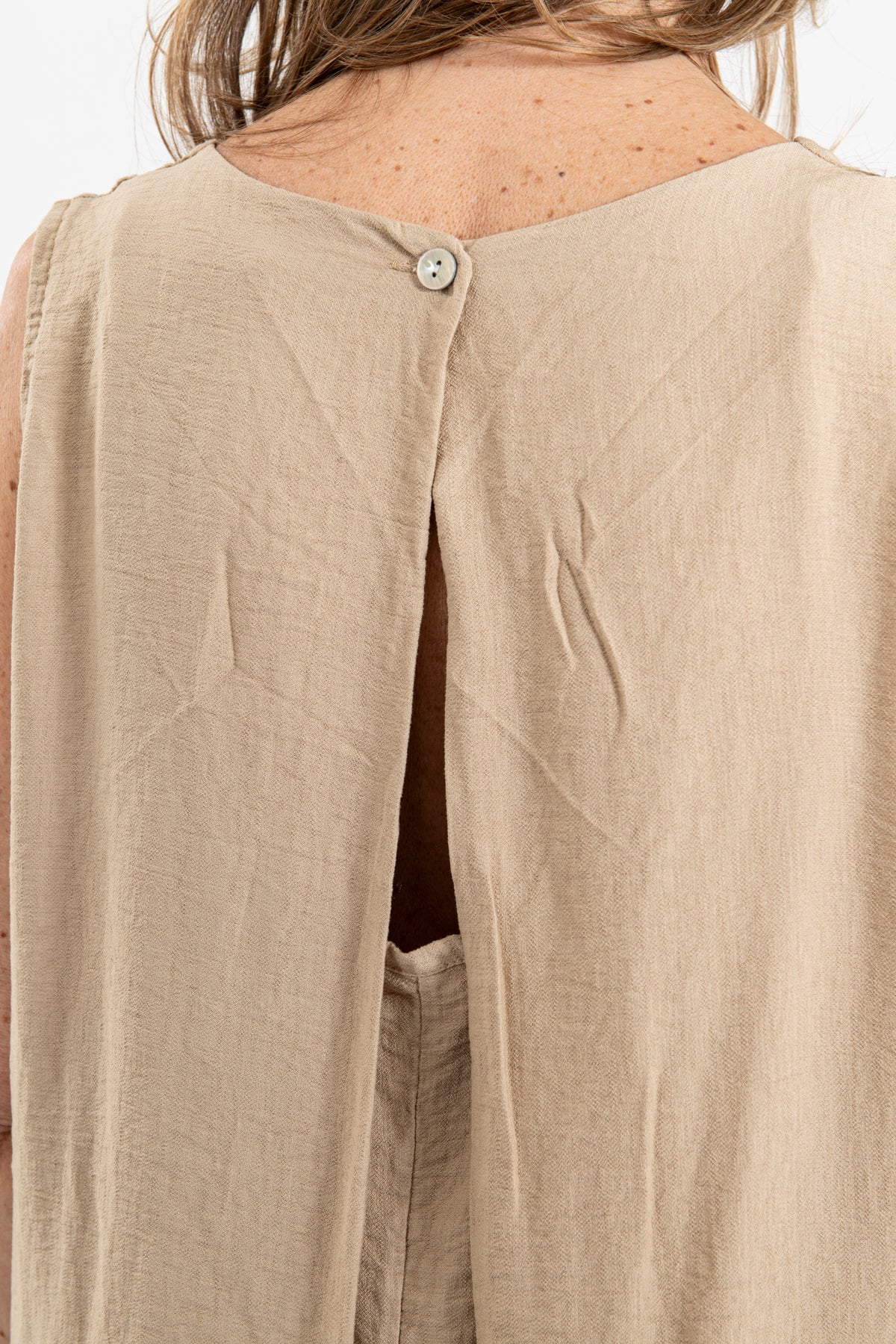 enterito largo sin manga cuello v con pliegue en espalda, tela fresca y de muy buena caida.