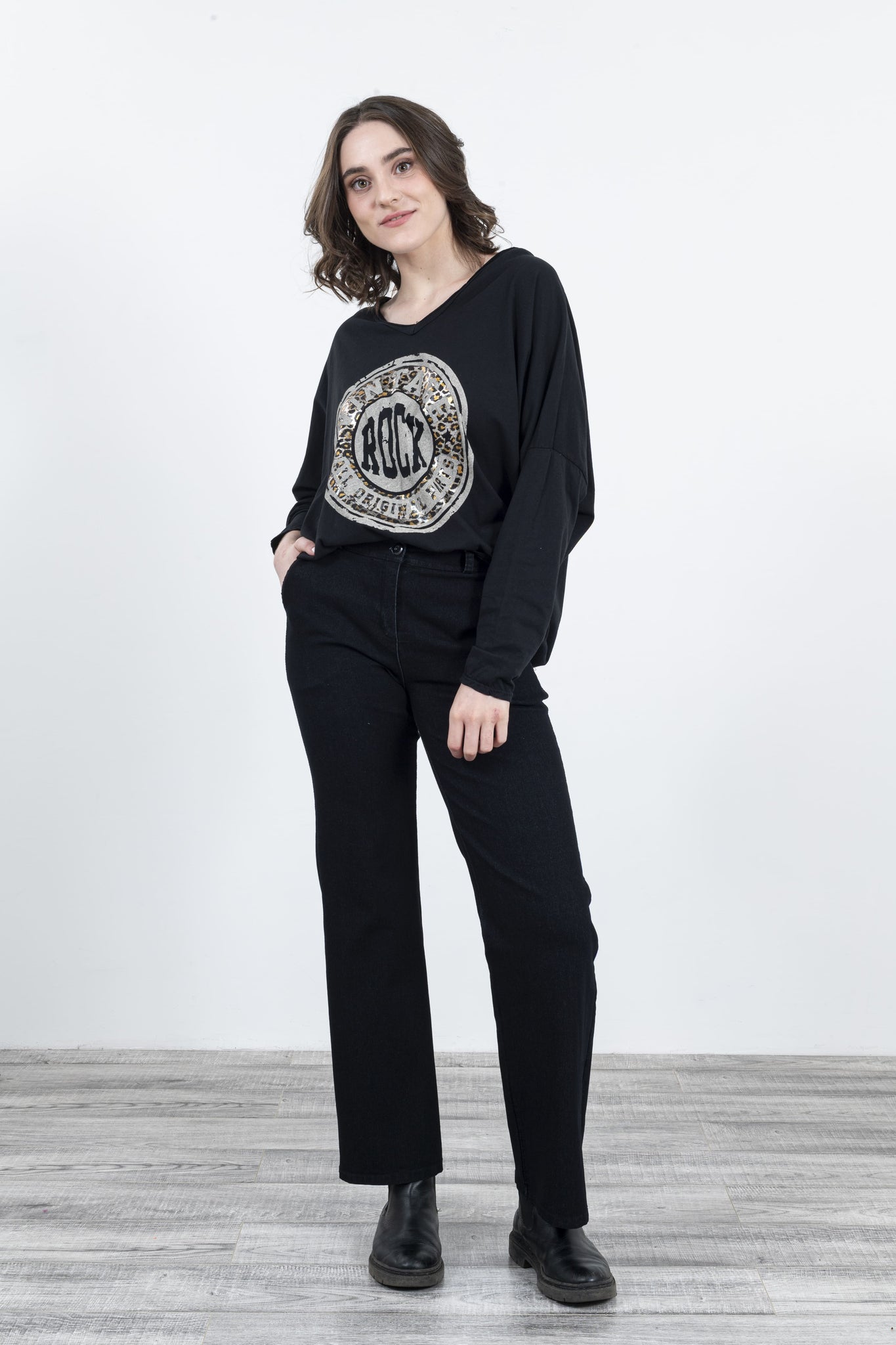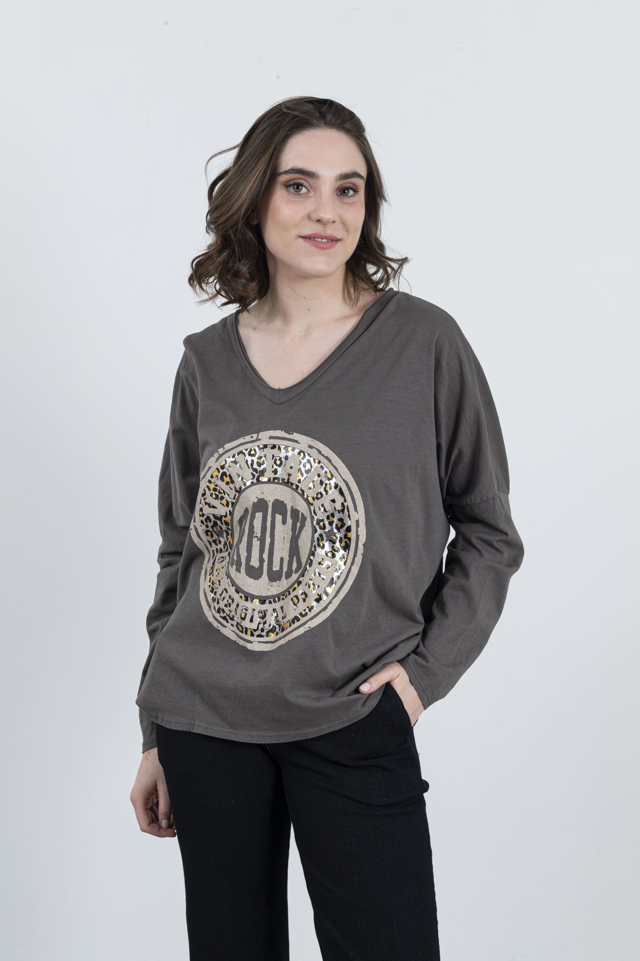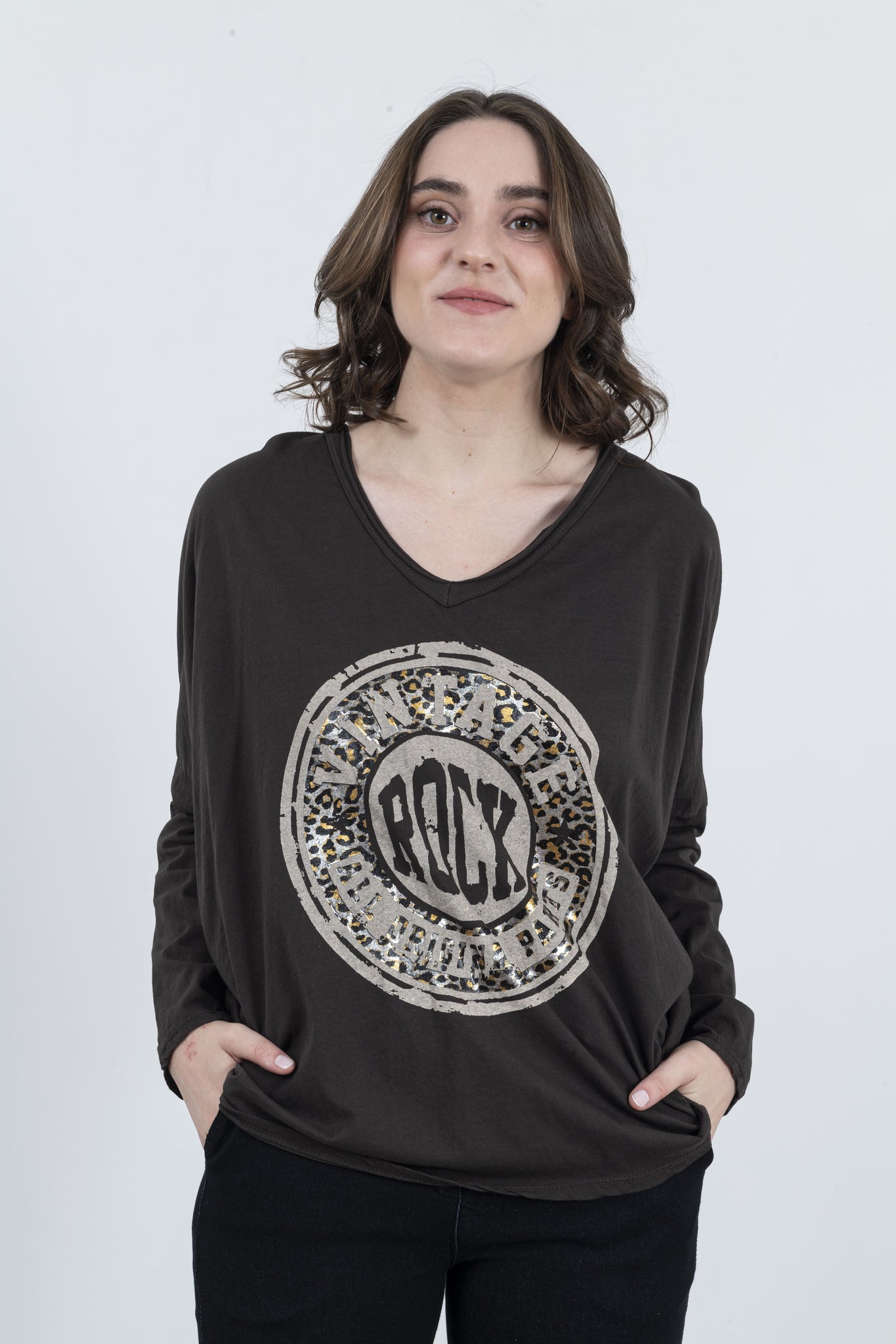La POLERA ROCK fue diseñada para las amantes del estilo casual con un toque rebelde, está confeccionada en 100% algodón, ofreciendo una textura suave, transpirable y ligera. Su cuello en V con doble vivo resalta el diseño, mientras que el estampado rockero le da un aire audaz y moderno.