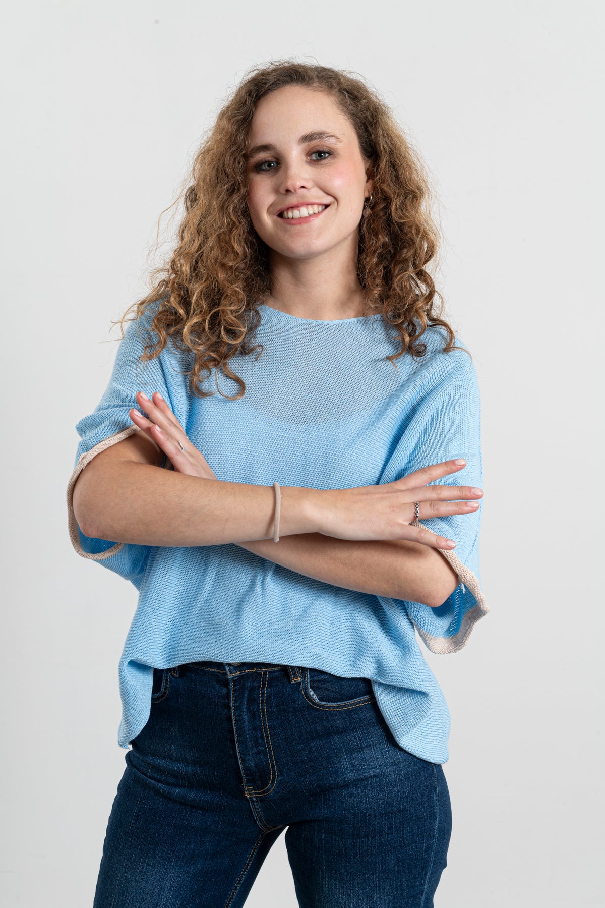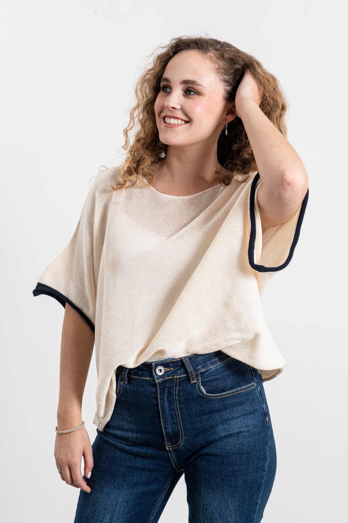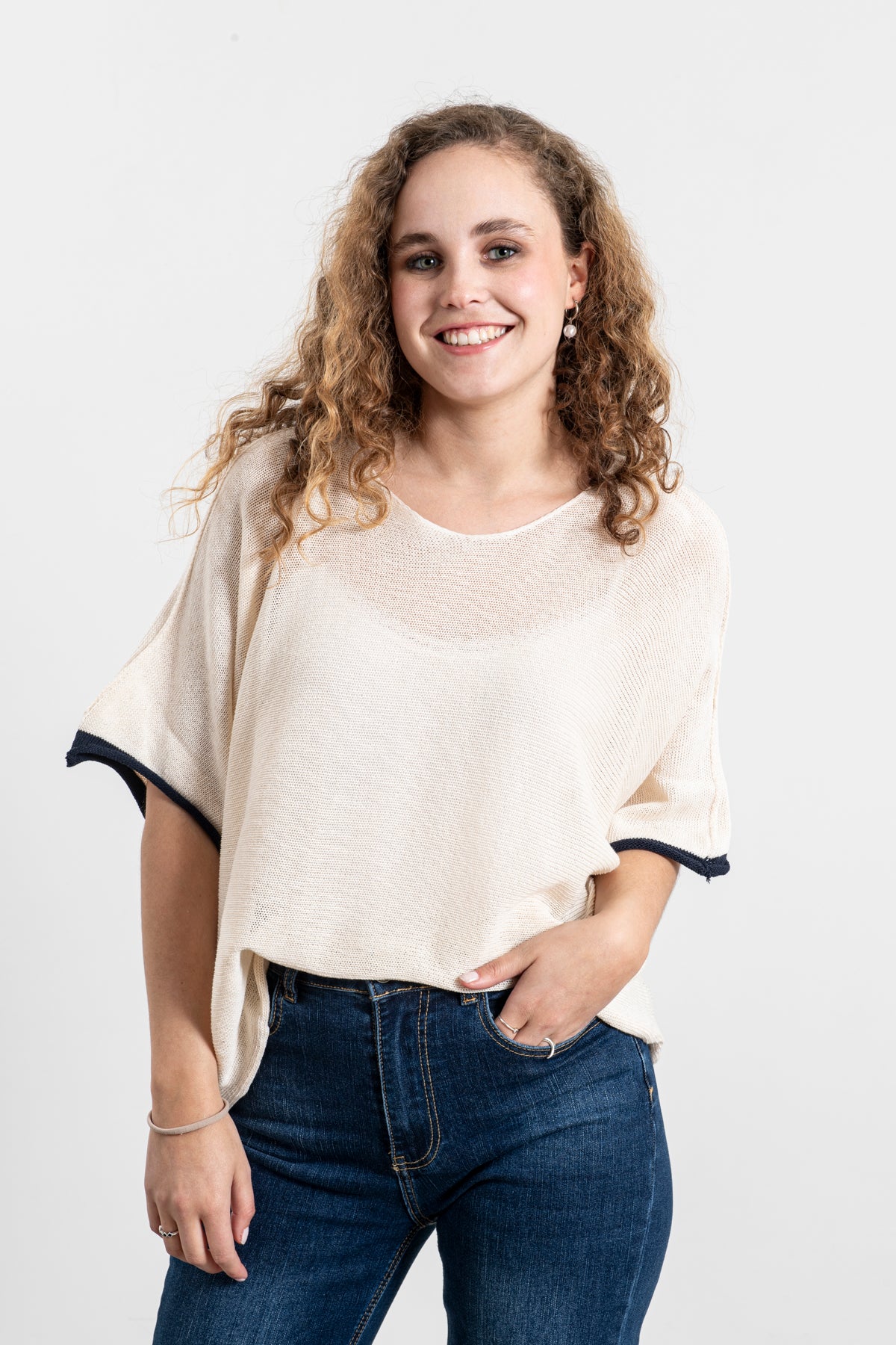 Descubre la elegancia y el confort del SWEATER DIANA, confeccionado en una suave mezcla de 55% algodón grueso y 45% poliéster. Su diseño de cuello redondo y manga 3/4, adornado con delicados bordes de color, lo convierte en una prenda sofisticada y versátil. Disponible en combinaciones únicas como Beige/Azul, Beige/Rosa, Manzana/Crema y Camel/Crema, este sweater es perfecto para añadir un toque de estilo refinado a tu vestuario.