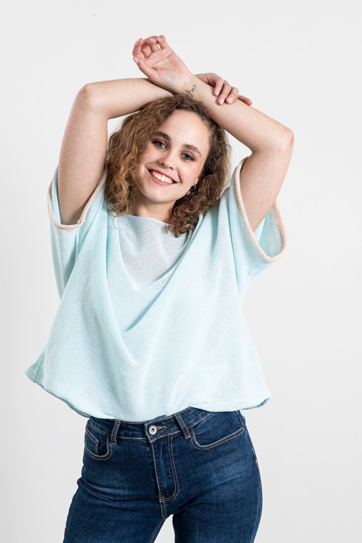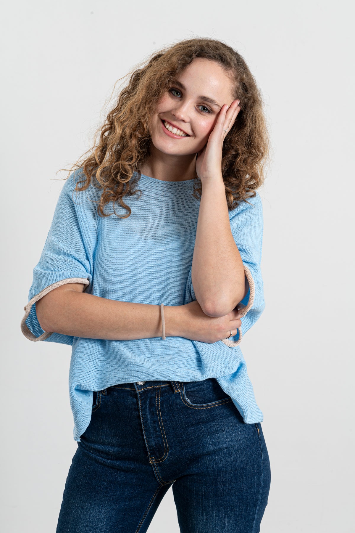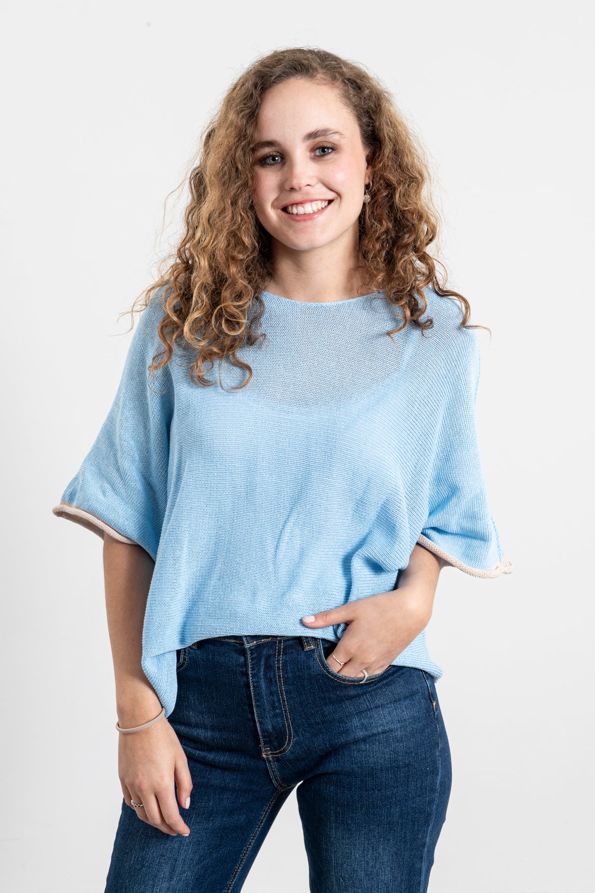 Descubre la elegancia y el confort del SWEATER DIANA, confeccionado en una suave mezcla de 55% algodón grueso y 45% poliéster. Su diseño de cuello redondo y manga 3/4, adornado con delicados bordes de color, lo convierte en una prenda sofisticada y versátil. Disponible en combinaciones únicas como Beige/Azul, Beige/Rosa, Manzana/Crema y Camel/Crema, este sweater es perfecto para añadir un toque de estilo refinado a tu vestuario.