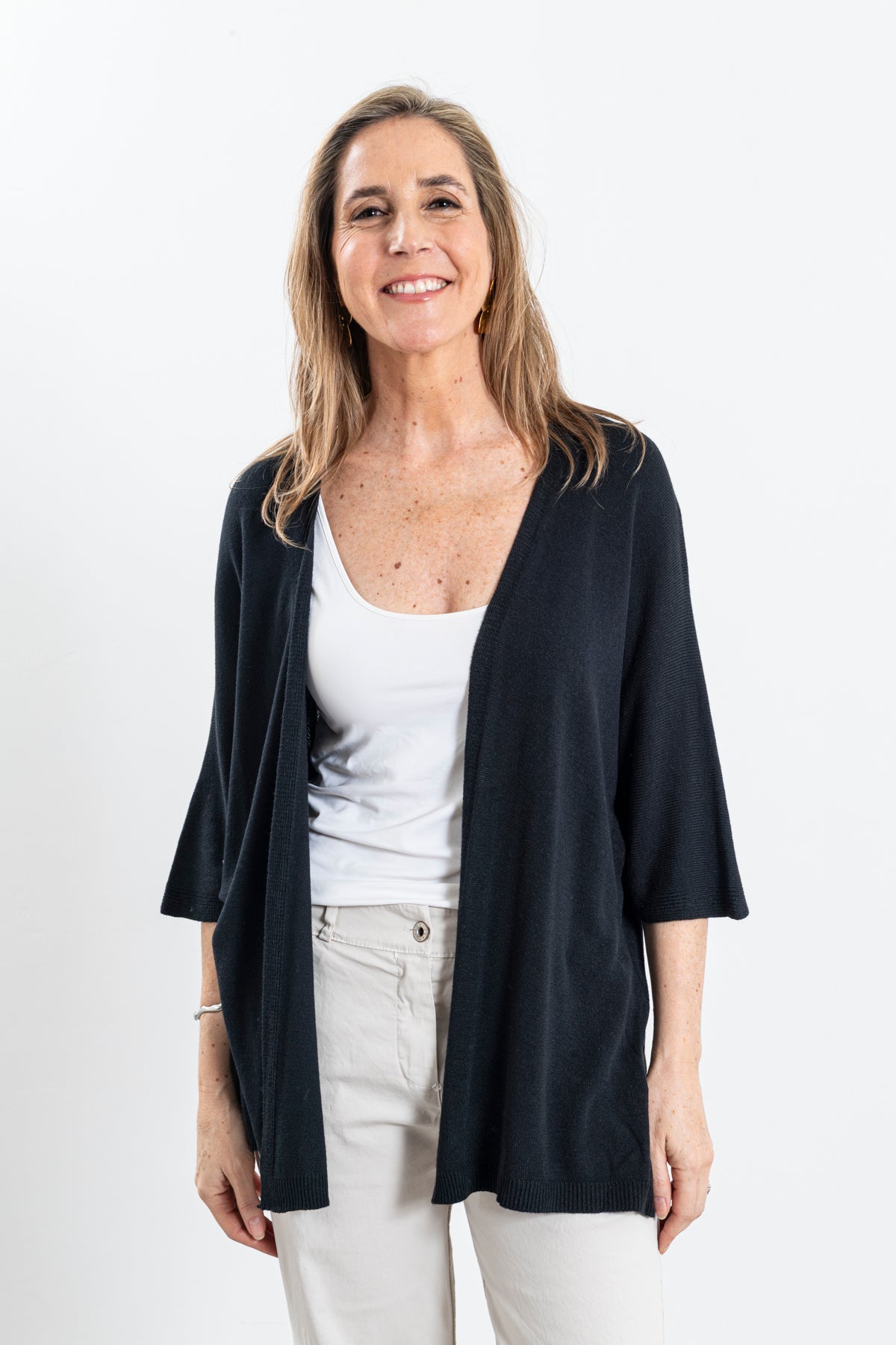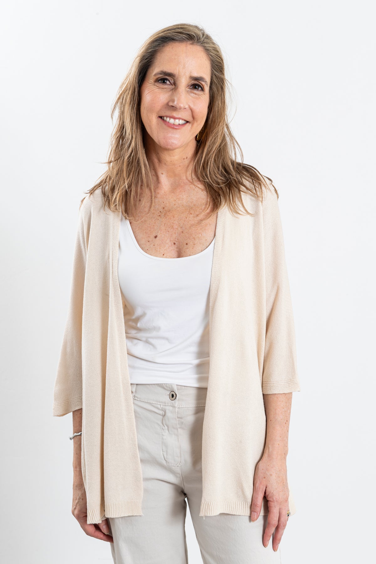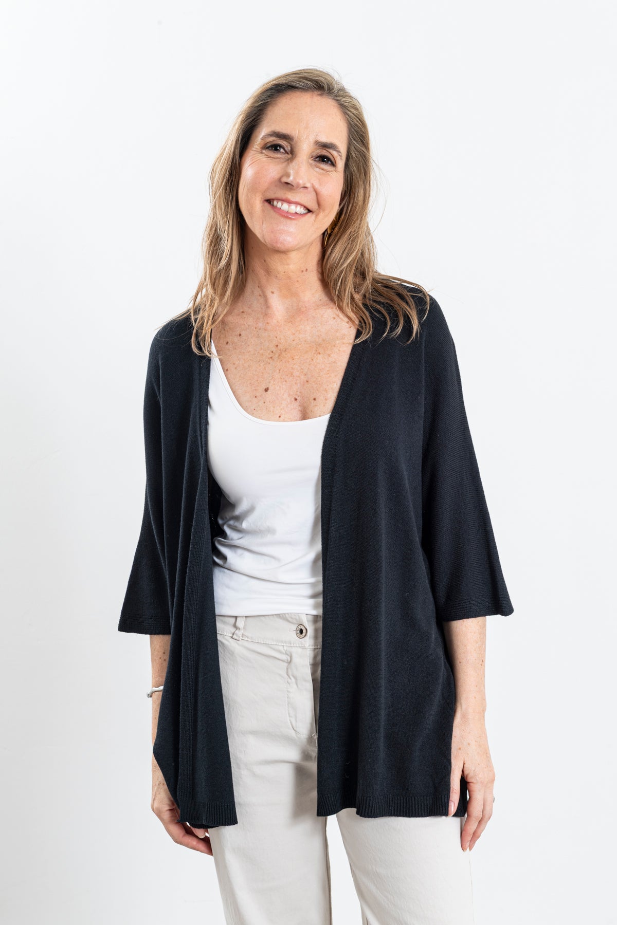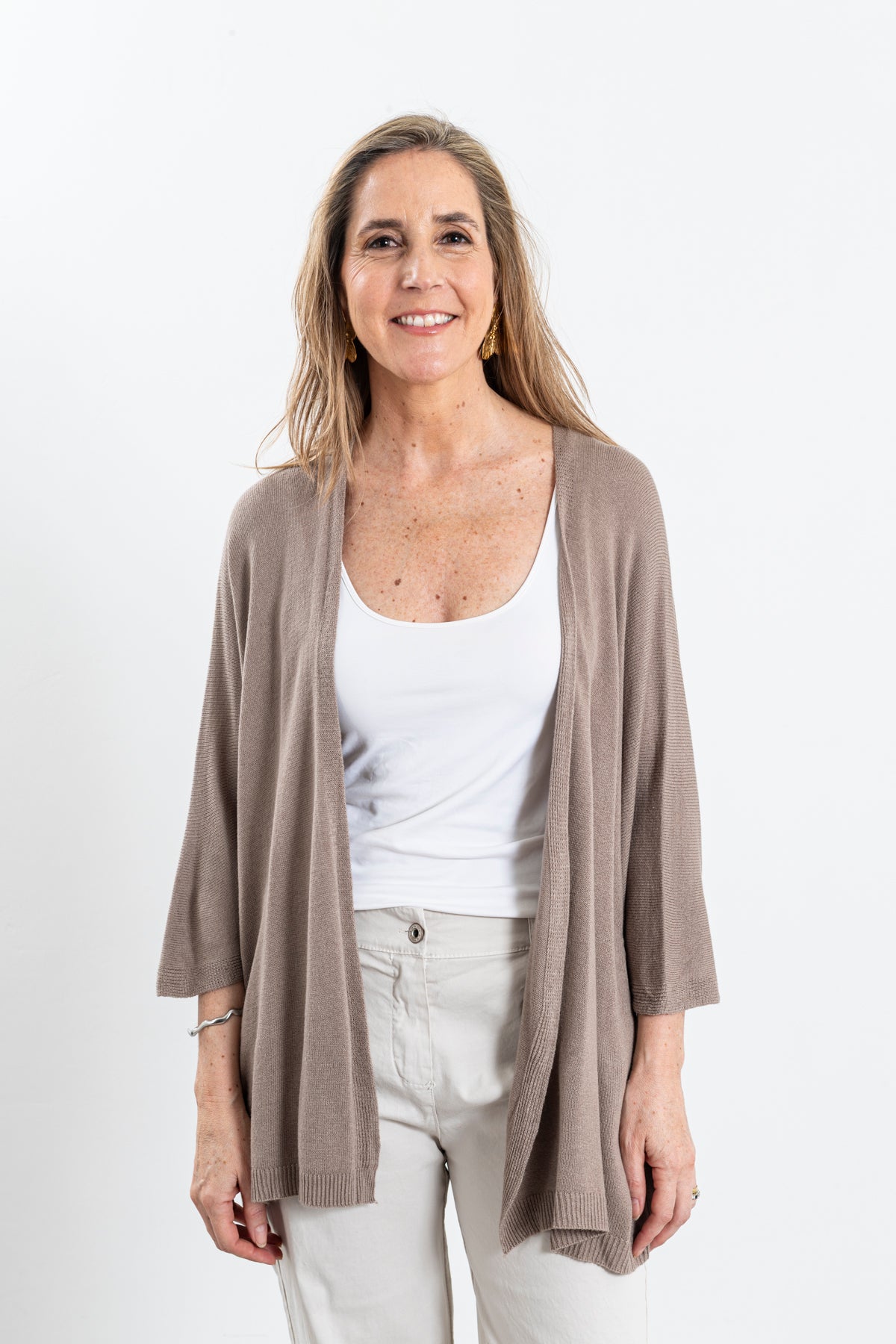 tapado largo, tejido fino, manga 3/4, muy buena caida.