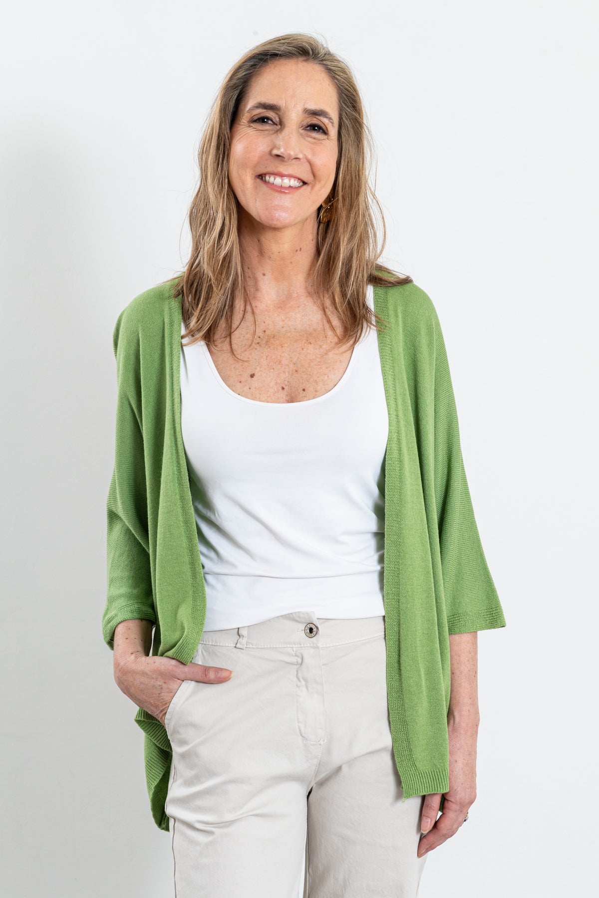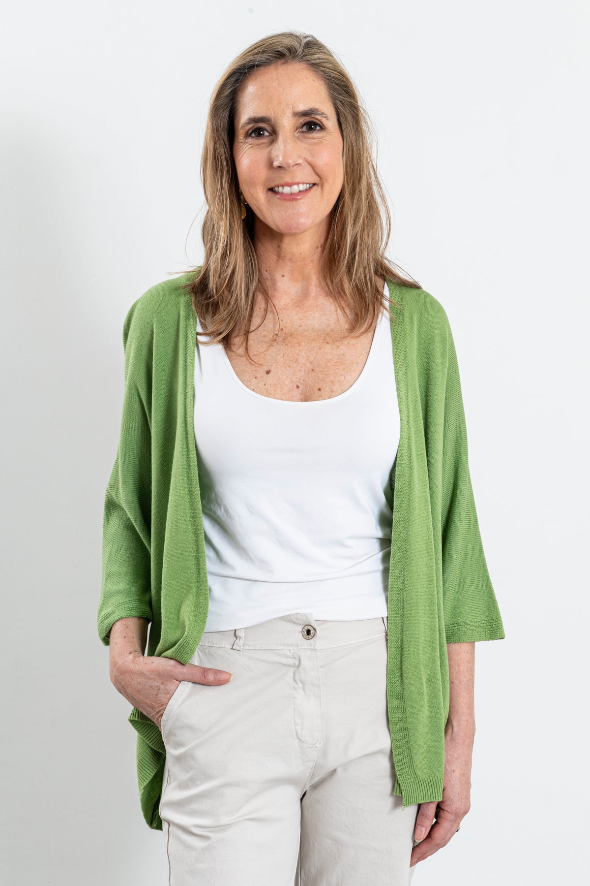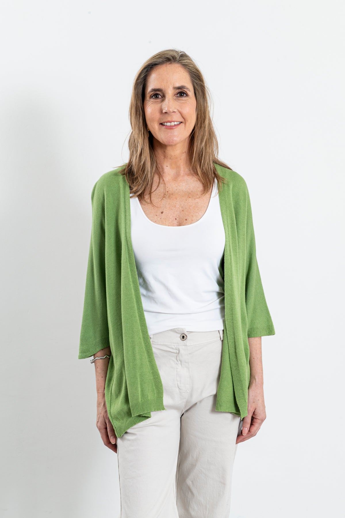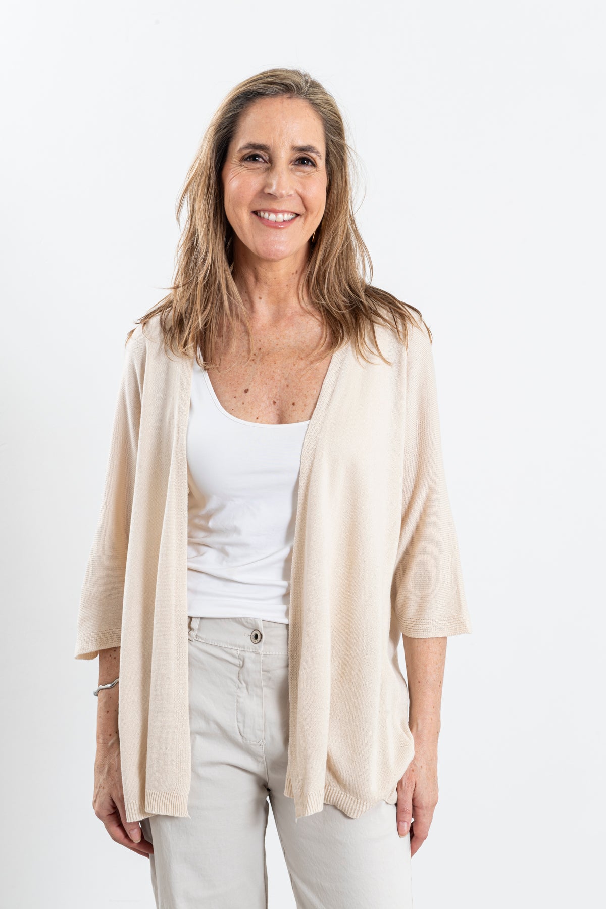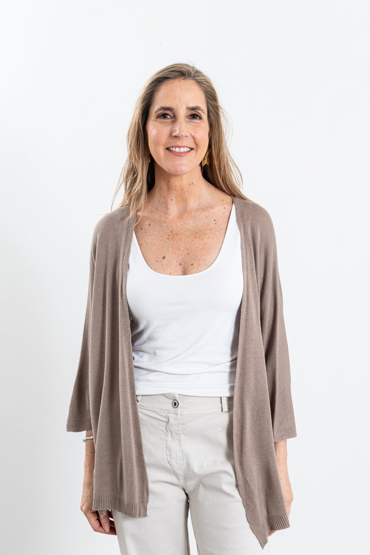 tapado largo, tejido fino, manga 3/4, muy buena caida.