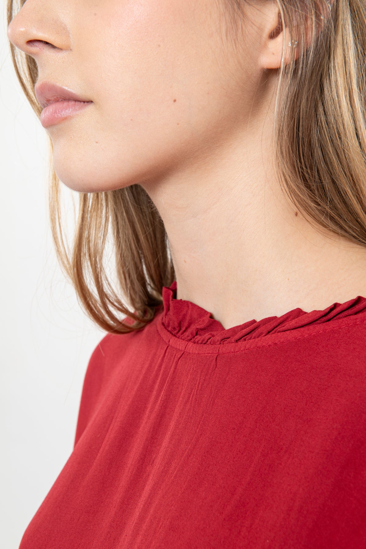 vestido liso 3/4, manga hombro caido, cuello vuelos, lazo cintura, tela suave al tacto, fresca y de buena caida.